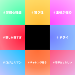 数十個ある性格を示す言葉の中から最も強く出ている8つの性質をピックアップして並べたもの